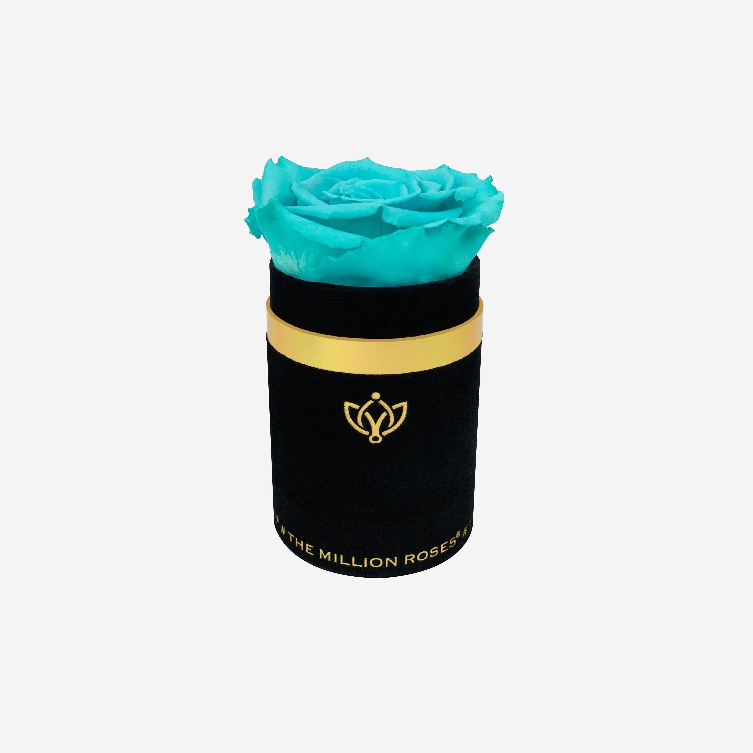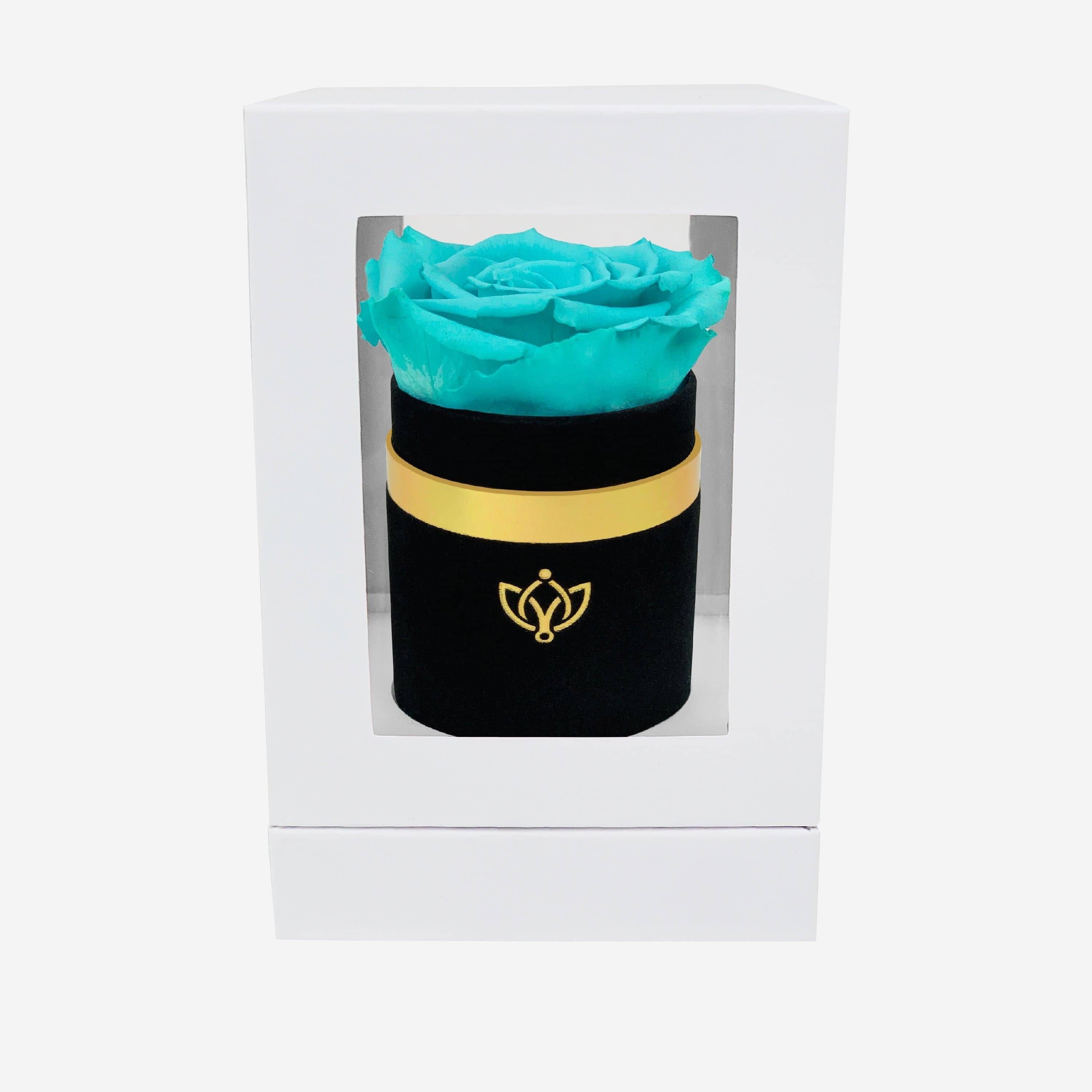 Caja básica de gamuza azul real | Mini rosas turquesas y doradas
