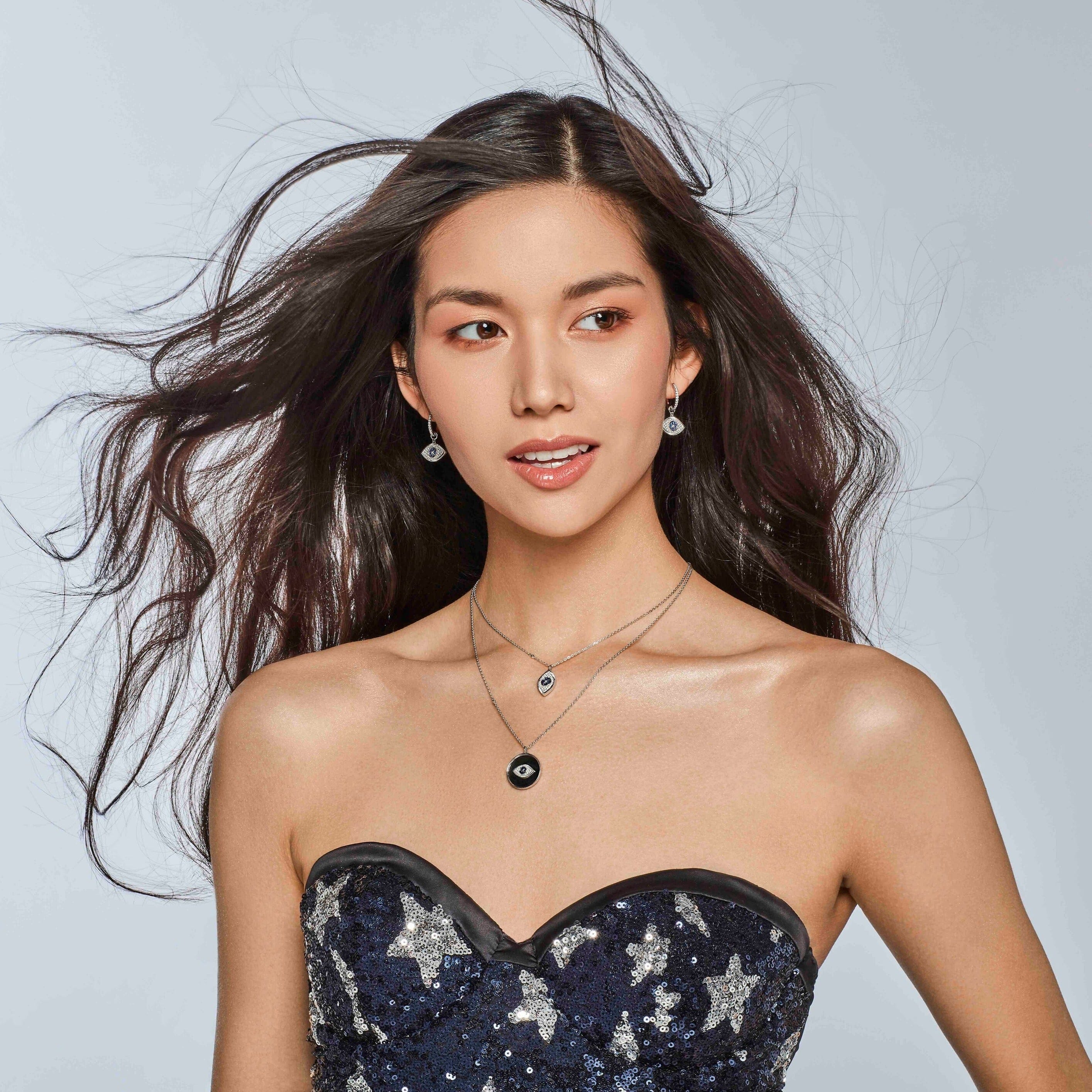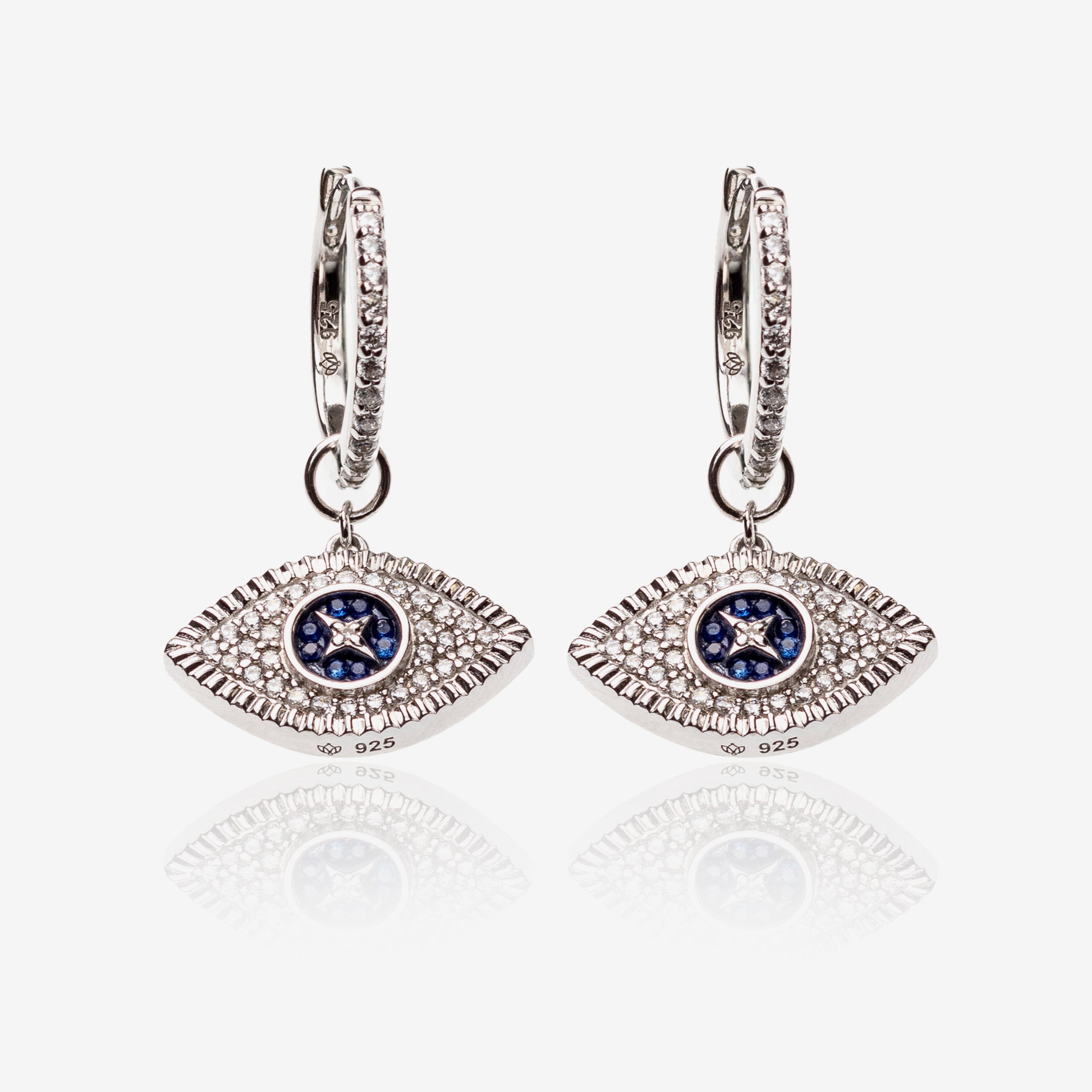 Pendientes de aro con dije de plata Evil Eye con diamantes