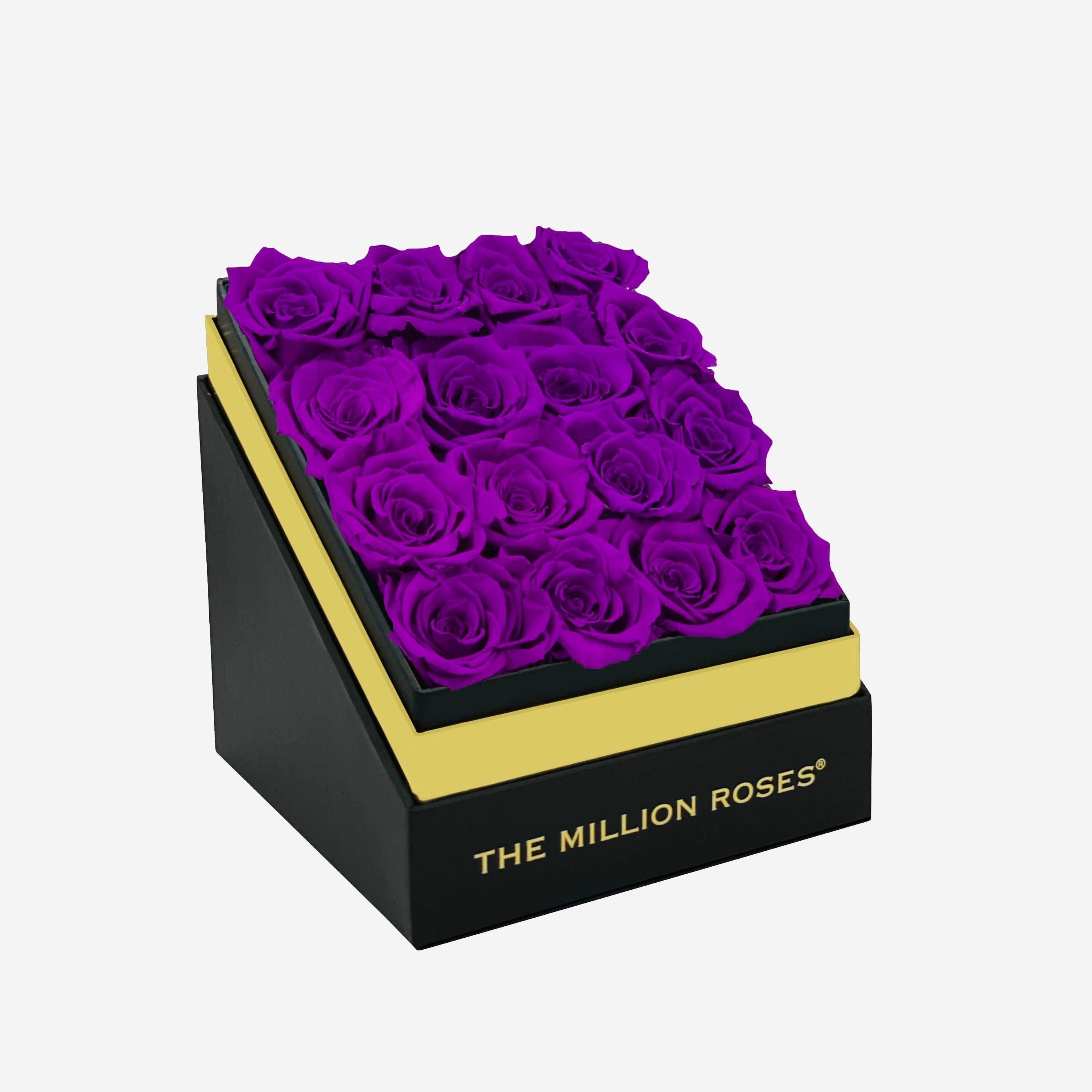 Caja Negra Cuadrada | Rosas moradas brillantes