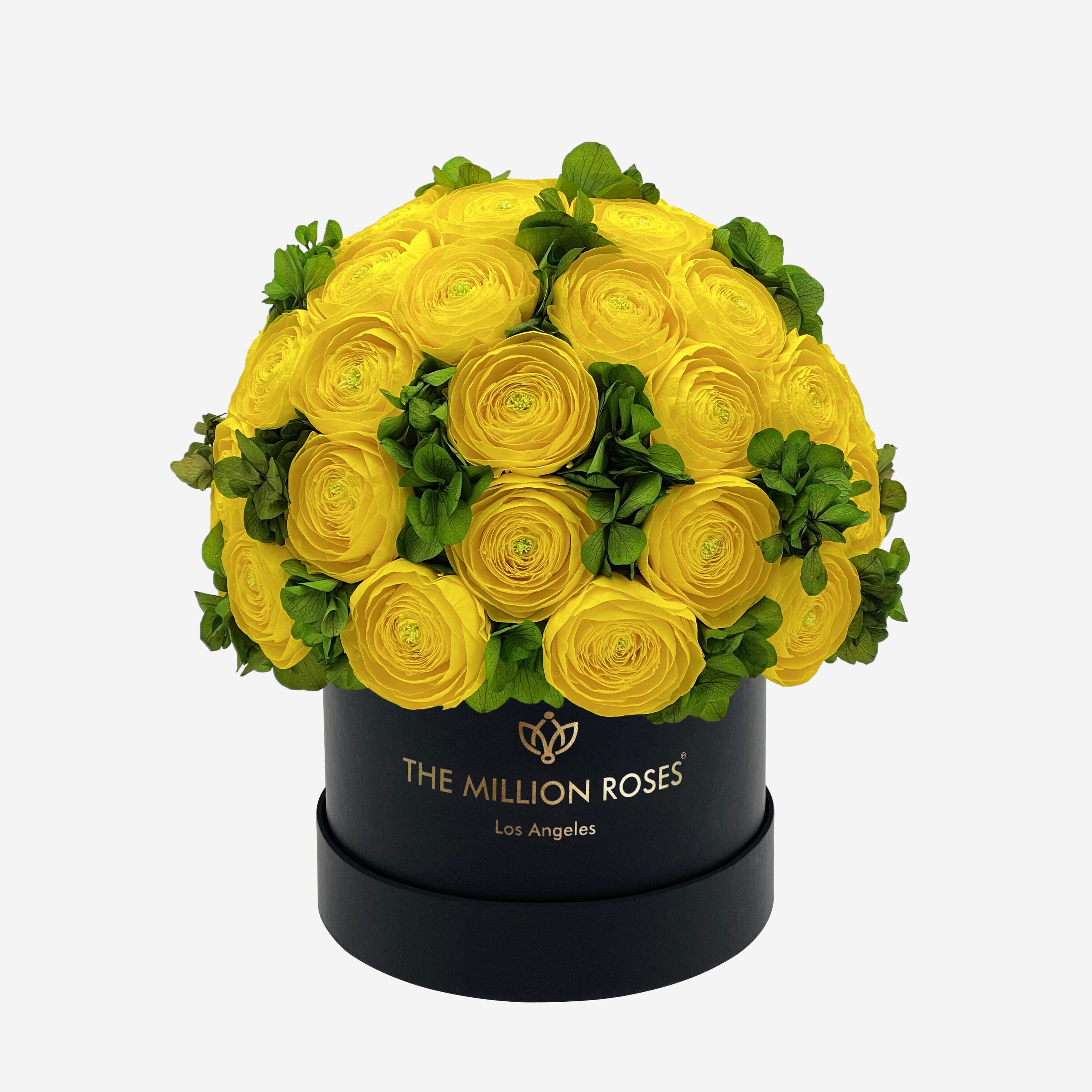 Boîte noire classique | Renoncules de Perse jaunes et hortensias verts