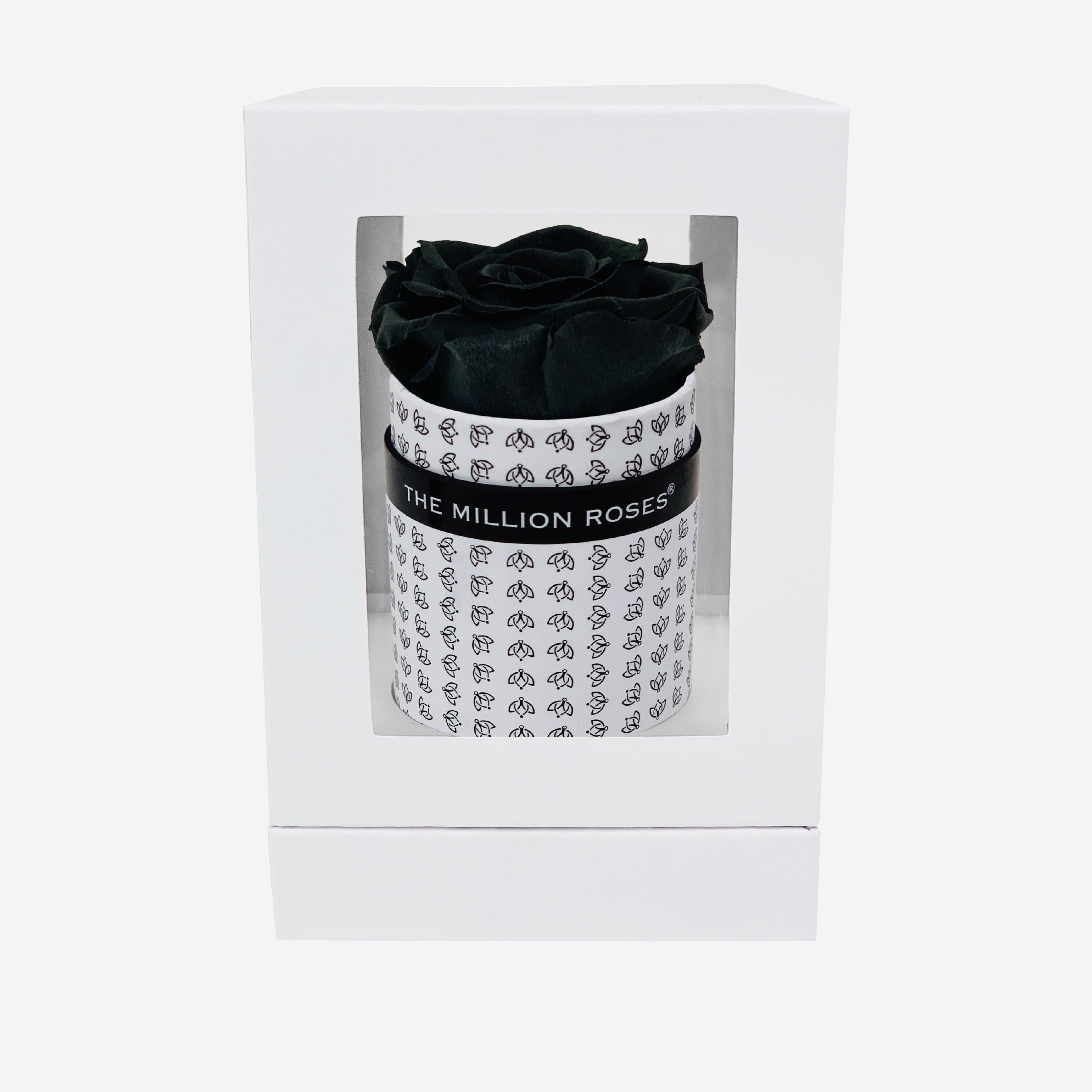 Une rose dit tout dans cette boîte blanche ornée d’une magnifique rose noire longue durée.