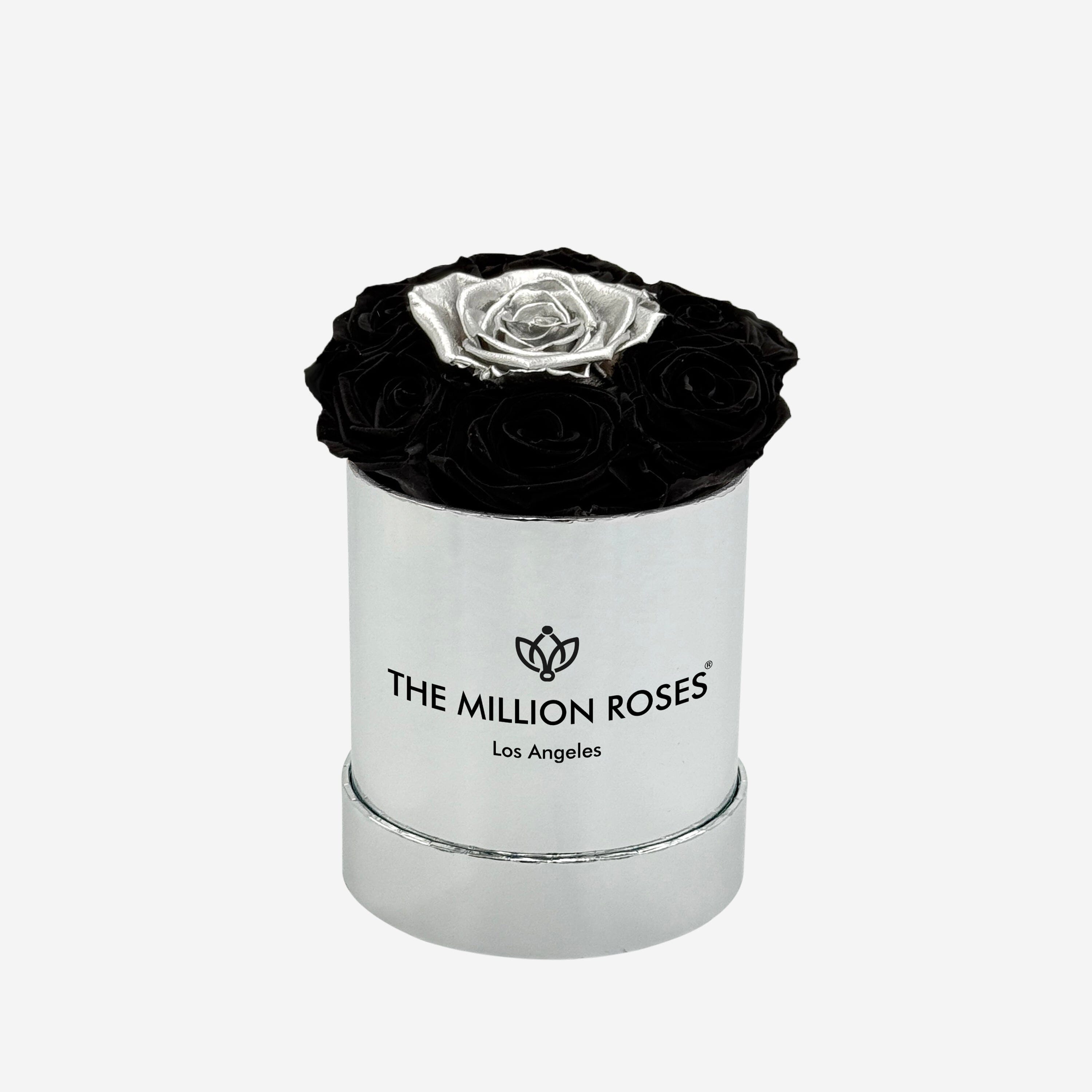 The hand-crafted gold box in our signature Basic arrangement showcases black and silver preserved roses.
