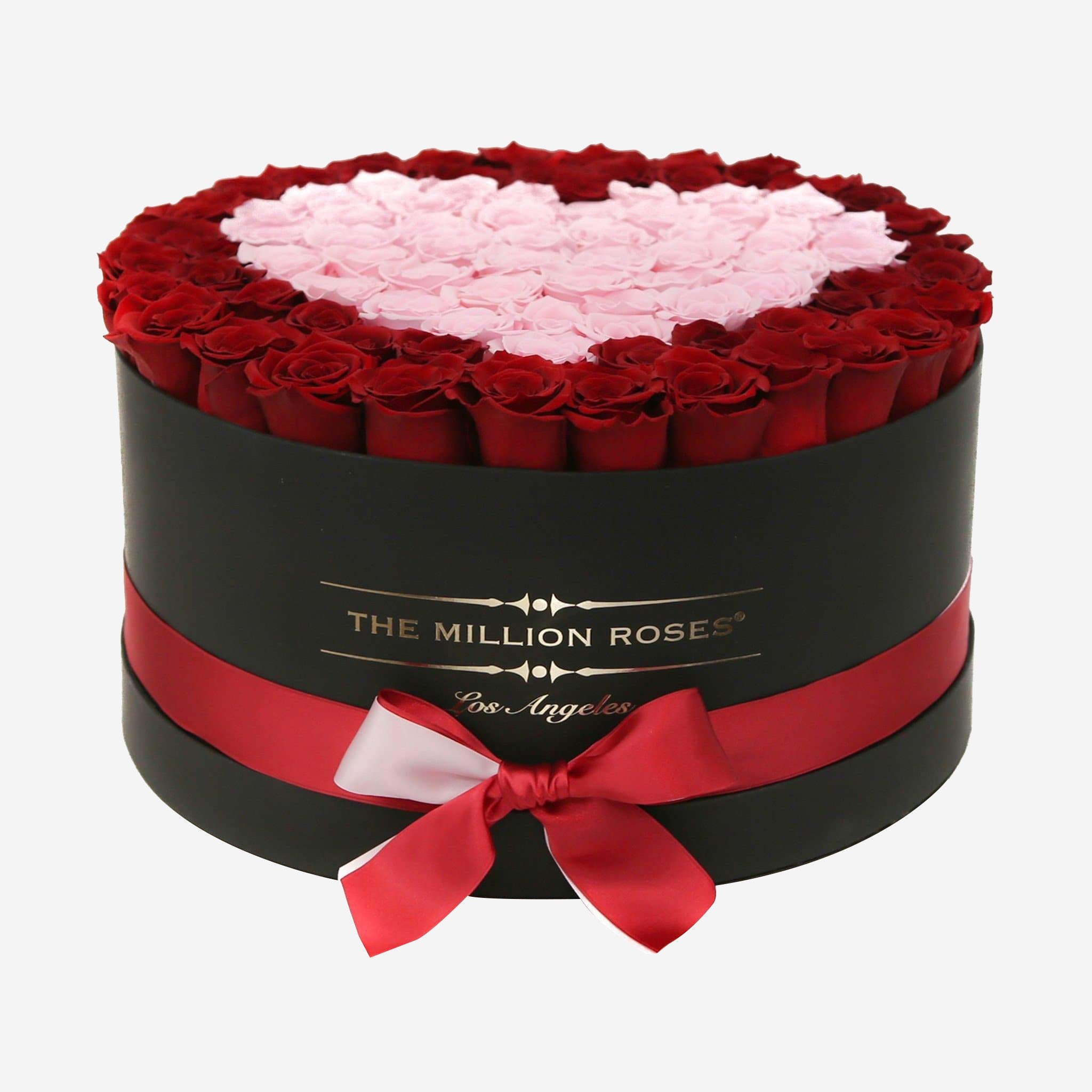 The red and light pink roses in our The Million Roses Deluxe arrangements come in hand-crafted black box and are as well-preserved as they are showstopping.